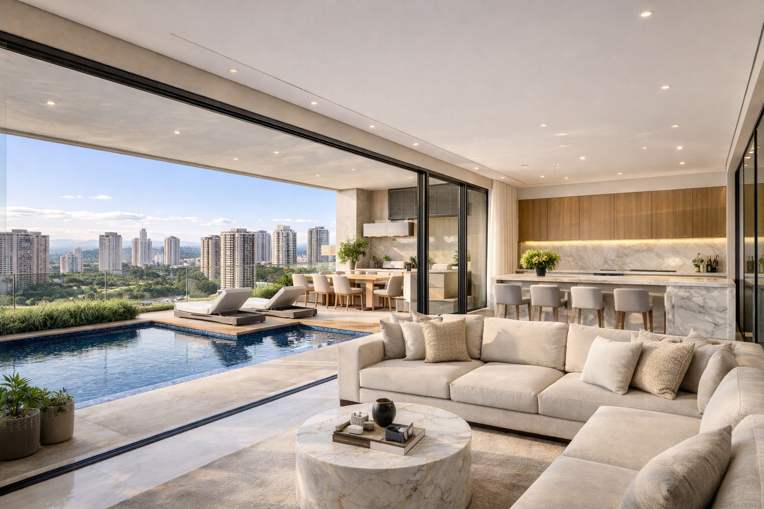 Cobertura duplex de alto padrão com vista panorâmica da cidade, varanda gourmet, piscina privativa e interiores amplos com acabamento refinado. Um imóvel exclusivo para quem deseja localização nobre, sofisticação e uma experiência residencial premium.
